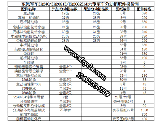 東風(fēng)軍車EQ240/EQ2081E/EQ2082E6D六驅(qū)軍車分動箱常規(guī)易損件清單價格表: