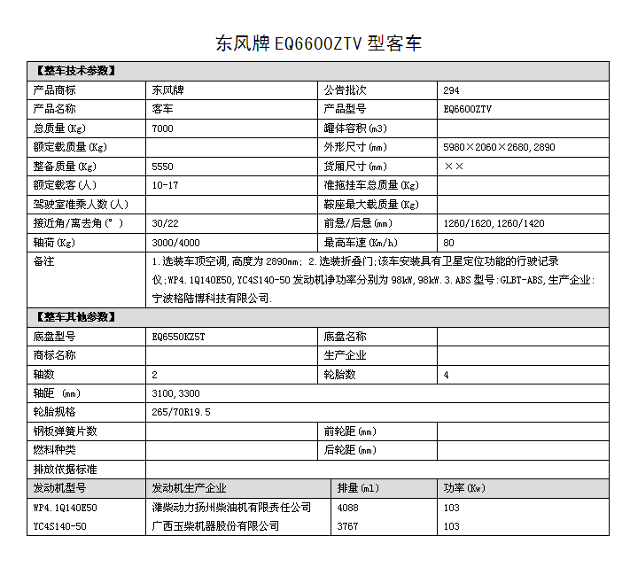 EQ6600ZTV四驅(qū)越野客車圖片,國(guó)五排放四驅(qū)10座越野客車價(jià)格,6米四驅(qū)客車多少錢,東風(fēng)四驅(qū)越野客車參數(shù)配置: 1.底盤型號(hào)EQ6550KZ5T,發(fā)動(dòng)機(jī)型號(hào):YC4S140 50 國(guó)五排放 2.整車外形尺寸長(zhǎng)寬高:(5980×2060×2890)mm 驅(qū)動(dòng)形式:4×4 東風(fēng)分時(shí)四驅(qū) 3.離合助力,方向助力,斷氣剎,鼓式自動(dòng),駕駛區(qū)域空調(diào) 4.車橋?yàn)闁|風(fēng)德納,輪胎為265/70R19.5型越野輪胎,ABS 5.工具箱,前置防裝杠,粘接式推拉玻璃,發(fā)動(dòng)機(jī)底板防護(hù) 6.鋁花紋地板,中檔皮革座椅10個(gè)+1個(gè)折疊座椅,整車座椅安全帶,手動(dòng)式外擺門,正副司機(jī)門,后置雙開(kāi)門,東風(fēng)原廠派恩頂置空調(diào) , 7.窗簾,滅火器兩個(gè),備胎一個(gè),獨(dú)立燃油暖風(fēng)系統(tǒng)帶兩個(gè)雙面王出風(fēng)口 8.其它為EQ6600ZTV型四驅(qū)越野客車標(biāo)配。具體配置參數(shù)參照(附件一)。 成品合格證、全額上戶發(fā)票、隨車工具、隨車文件各一套。