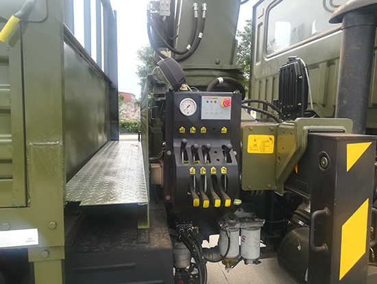 2. 采用徐工5噸折臂式隨車(chē)吊,SQZ105型徐工原廠吊機(jī),最大起重質(zhì)量5噸,三節(jié)臂,舉升高度11米,工作半徑8米,全液壓,全回轉(zhuǎn),車(chē)廂尺寸4.25米,遠(yuǎn)程油門(mén)控制,下操作。