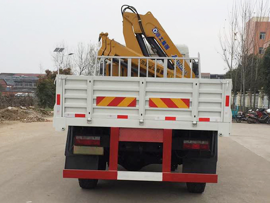 2. 采用徐工5噸折臂式隨車吊,SQZ105型徐工原廠吊機,最大起重質(zhì)量5噸,三節(jié)臂,舉升高度11米,工作半徑8米,全液壓,全回轉(zhuǎn),車廂尺寸4.25米,遠(yuǎn)程油門控制,下操作。