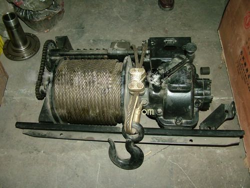——這種絞盤和船用的一樣,但它是直放而非一般的橫放形式。更特別的是,它上面沒有繞上鋼纜或麻繩,而僅有一個(gè)圓柱形的絞動(dòng)鼓。使用這個(gè)PTO時(shí)比現(xiàn)代的絞盤還要簡(jiǎn)單,只要開著引擎并把絞盤旁邊的波棍推進(jìn),圓柱體馬上會(huì)自轉(zhuǎn)。此時(shí)再將麻繩套在絞動(dòng)鼓上一二圈,繩的另一端則以人手把持著,操作人用力拉,麻繩便會(huì)隨著絞動(dòng)體一起轉(zhuǎn)。只要操作人不用力拉,繩子一放松,絞動(dòng)鼓則自行旋轉(zhuǎn)但不會(huì)帶動(dòng)麻繩。它的缺點(diǎn)是不能倒轉(zhuǎn)。