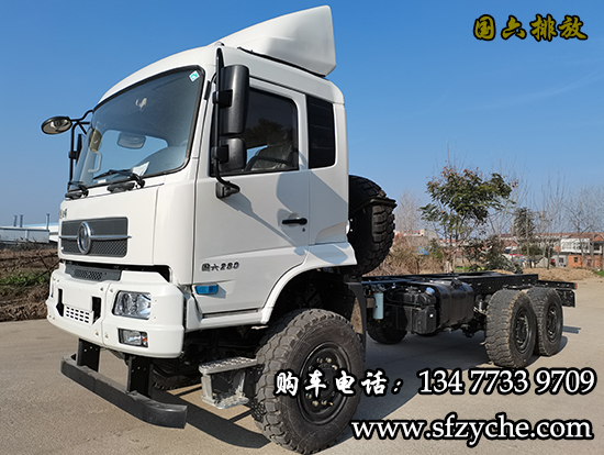 DFV2223GP6DJ型國六排放東風(fēng)天錦六驅(qū)重型越野車底盤,總質(zhì)量22噸,核定載質(zhì)量可達12噸,康明斯發(fā)動機國六排放,法士特機械式8擋手動變速箱成就黃金動力組合,底盤采用純正東風(fēng)沙豹沙漠車血統(tǒng),采用軍工大江車橋帶輪邊減速,3把差速鎖,軸間差速鎖跟輪間差速鎖,株齒ZQ1200分動箱軍工品質(zhì)可靠安全,東風(fēng)天錦D530一排半豪華駕駛室可坐三人,駕駛室隔音效果好,制冷制熱設(shè)備完善,新款儀表臺更加動感,盡享駕乘樂趣,輪胎為365/80R20越野輪胎更加有利于通過惡劣路面。